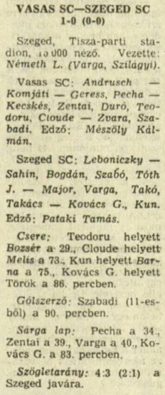 1989. június 25-én pillanatokra állt a Szeged az NB I-től, végül azonban maadt a másodosztályban.Az évfordulóról az FK Szeged Facebook-oldala posztolta a jegyzőkönyvet tartalmazó fotót. Az 1989. június 25-én lejátszott Szeged SC – Vasas SC mérkőzés egyike a legendás szegedi futballpillanatoknak: még ha nem is éppen pozitív emlékkel, hiszen ezen a találkozón a 90. percben befújt tizenegyessel nyert a Vasas a Felső Tisza-parti stadionban, így nem jutott fel az NB I-be a Szeged SC.