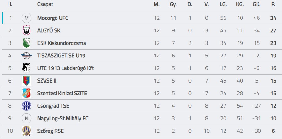 Egyedül a Kiskundorozsma tudott pontot szerezni idegenbeli csapatként a Tisza-Maros csoport legutóbbi fordulójában: a harmadik helyen álló dorozsmaiak ezzel maguk mögött tartották a Tiszaszigetet. A listavezető Mocorgó UFC magabizto sikerrel folytatta, az Algyő szűk győzelmet aratott, míg a Csongrád közel egy tucat találatot szerzett.