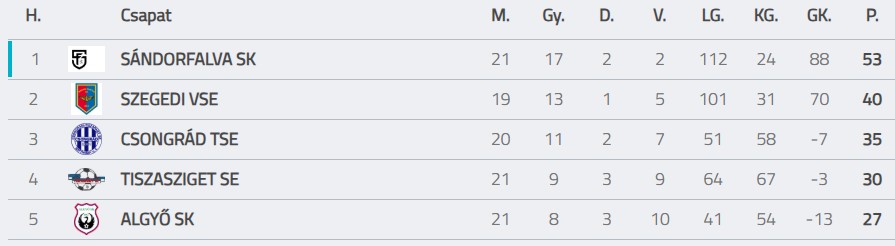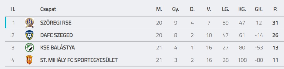 Az alsóházat még nem nyerte meg a Szőreg, ehhez egy pontra van szüksége, hiszen még van egy elmaradt meccse éppen a második DAFC ellen.