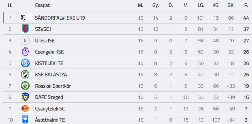 A listavezető Sándorfalva Röszkén nyert, míg az SZVSE több mint egy tucatot lőtt a sereghajtó Ásotthalomnak. Fontos meccset nyert meg a Csengele a Balástya ellenében.
