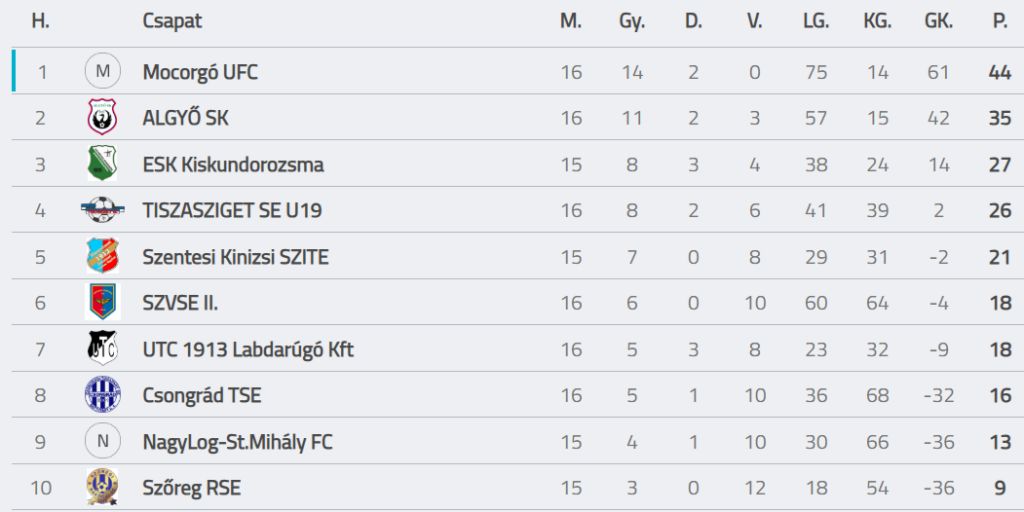 Győzelmével bebiztosította első helyét a Mocorgó UFC, az Algyő döntetlent játszott a Csongráddal.